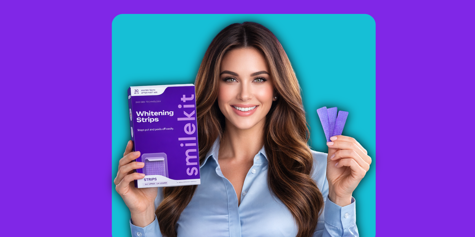 Smilekit Purple Tooth Strips provide a peroxide-free, sensitive-free solution to brighten your smile safely. The advanced purple color-correcting formula neutralizes yellow tones while protecting enamel and gums.
